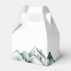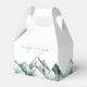Parte da coleção Highland da Redwood & Vine Design Co., esta caixa personalizada de favoritos de casamento é uma combinação perfeita para casamentos rústicos, externos ou de destino. O design apresenta picos de montanha de cores aquáticas pintadas manualmente em tons verdes suaves, em conjunto com texto personalizável para nomes e uma data. Ideal para empacotar doces, presentes pequenos ou doces para casa, esta caixa de favores de na moda adiciona um toque cênico e sofisticado à sua celebração.
