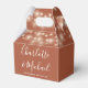 Caixa de favoritos de casamento elegante com luzes de cordas bonito, nomes de guião de assinatura chic e data especial em um fundo Tterracotta. Você pode personalizar com seu próprio obrigado sua mensagem ao contrário. Uma maneira perfeita de dizer obrigado aos seus hóspedes! Projetado por Thisnotme©