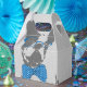 Um belo e engraçado animal de moda tradicional, um buldogue francês com arco azul brilhante e óculos. preto, imagem de filhote de filhote de cinza, vintage, antigo grunge, folha de fundo de cinza angustiada, pavão, coleira, cinza, preto, fofo, divertido, brilhante, risada, moda. Cachorro, animal, cachorrinho, raça de cachorro, animal, amante de cachorro. Personalize-o com seu nome de palavra ou frase favorita clicando no botão personalizar e adicionando texto, escolha a fonte e a cor do texto. Impressão de imagem