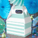 Caixinha De Lembrancinhas Turquesa Claro e Listrado Horizontal Largo Branco