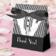 Elegante e formal - esta pequena caixa de presente de smoking é personalizada para atender às suas necessidades. Diga obrigado de você de uma maneira especial com um tux branco de lapela, gravata arco de marrom e boutonniere rosebud. Camisa de vestido com o botão da cinza. Um fundo listrado preto e branco com fita correspondente. Perfeito para casamentos ou jantas formais de gravatas negras e arrecadações de fundos. Para ver outras "caixas de propinas de smoking" e produtos correspondentes, visite minha loja "The Hungarican Princess" em www.zazzle.com/hungaricanprincess*. Veja a minha categoria de departamento "Black Tie Tuxedo Collection".