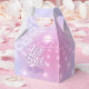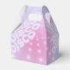 Elegante design de caixa de lembrança personalizada para despedida de solteira em cores gradientes lindas, desde lavanda até periwinkle e rosa, com uma bola de discoteca funky, fonte retrô glamorosa e fundo de luzes de discoteca cintilantes. Este design sofisticado e elegante é facilmente adaptado para qualquer jantar especial e/ou evento de dança. Busque ID928 para ver outros produtos desta coleção trendy.