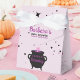 Adicione um toque de magia de Halloween ao seu chá de fraldas com estas caixas de favor encantadoras! Apresentando a silhueta de uma bela bruxa grávida e um caldeirão mágico, essas caixas são perfeitas para uma celebração festiva e única. As bolhas de caldeirão, com poção colorida, adicionam um toque caprichoso ao design preto. Cercadas por estrelas, estas caixas misturam a alegria de um chá de fraldas com o charme assustador do Dia das Bruxas. Ideal para aqueles que amam um toque único e festivo!
