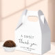 Caixa de favoritos de casamento com "Um doce obrigado" em uma simples tipografia moderna e um roteiro de na moda, seus nomes se juntaram por um coração e sua data de casamento.