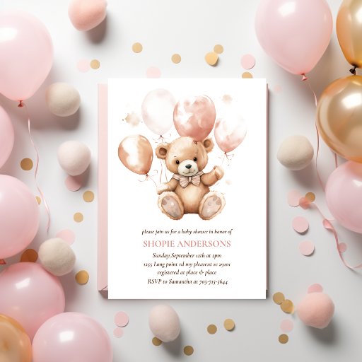 Cute Bear With Balloons | Baby Pink Criado por Анастасија Сарева