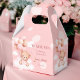 Ursinho rosa com balões em nuvens, personalizado, caixa de favorecimento de festas personalizadas.