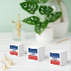 Celebrating the USA's 250th anniversary. This red, white, and blue favor box has the word 'USA' in the center. The years 1776 and 2026 are next to USA. The top stripe is blue and has white stars. The center stripe is white. The bottom stripe is red with white stars.