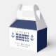Caixa de favor azul e listrada de branco "vamos fazer safadeza" para uma festa de despedida de solteiro(a). Personalize com o seu próprio texto.