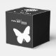 Dê aos seus convidados, madrinhas, padrinhos de casamento, ou a qualquer outra pessoa um tratamento especial com estas caixas de favores personalizáveis que apresentam um fundo preto com uma borboleta branca de cauda de andorinha, borboleta de monarca, e margarida na frente, atrás e no topo da caixa. Cada um desses lados também contém alguns exemplos de texto que você pode personalizar para seu próprio casamento ou evento com tema de primavera. Certifique-se de verificar os outros produtos do conjunto Dísies e Borboletas em Preto para criar uma pesquisa verdadeiramente coordenada para o seu evento.