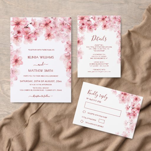 Caixinha De Lembrancinhas Watercolor Cherry Blossom Pink White Wedding