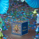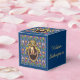 A barba - Nesta caixa está um design original usando um retrato do autor William Shakespeare. O retrato está em um quadro de ouro oval de ornamentado com fitas e uma coroa no topo. O papel de parede de fundo azul é decorado com castelos, coroas de reis e flores amarelas e vermelhas, trazendo à mente o romance, a tragédia e a comédia de suas peças e poesia. Há texto definido para personalizar, usar como está ou excluir se preferir.