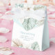 Use estas caixas de favor no seu casamento na praia de inverno com esta linda cor d'água folhas tropicais e design de poinsettia. As cores utilizadas incluem: azul de ardósia, verde de floresta, marfim e bronzeado.