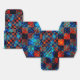 Xentrom riscos cruzados, de cor azul Escuro e riscos em azul claro e laranja com toneladas avermelhados manchados e, bordas security nos traços que causar um percepção de sujo ou manchado.