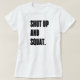 Quadrados são um daqueles exercícios que você ama ou odeia. Não importa o que aconteça, faça-os de qualquer maneira para trabalhar com o seu corpo inferior. Podem fazê-los com pesos na academia ou peso corporal, basicamente em qualquer lugar, então calem a boca e se abaixem! Uma camiseta branca engraçada para o treinamento de malhações na academia com o texto "CALA A BOCA". impresso em uma fonte preta. Podem ser escolhidas outras cores e estilos.