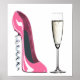 Calçado de Estiletto Rosa e Poster de Vidro de Cha