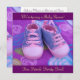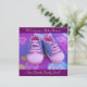 O costume cor-de-rosa do CHÁ DE FRALDAS do bebé dos calçados dos convites doces preciosos do chá de fraldas adiciona seu texto, cartões cor-de-rosa do convite do chá de fraldas do tênis de bebê, cartões do anúncio do bebê.