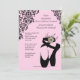Um design bonito, formal que caracteriza o laço e calçados de dedo do pé pretos do balé contra um fundo cor-de-rosa. Você é certo receber muitos cumprimentos e aplauso para sua escolha dos convites. O cartão é fácil de personalizar com seus fraseio, pia batismal, cor da pia batismal e escolha de seis tipos de papel.