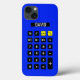 Calculadora azul com seu nome e botões pretos e amarelos do teclado. O texto na tela da calculadora pode ser alterado ou excluído.