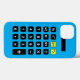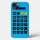 Calculadora azul-aqua com teclado preto e amarelo.