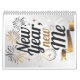 Um design inspirado no Ano Novo, com a frase "Ano Novo, Ano Novo" em uma fonte na moda, elegante. Envolva o texto com elementos festejantes simbólicos como fogos de artifício