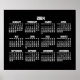 Calendário anual 2024 com texto branco sobre fundo preto. As dimensões do poster são de 24 por 20 polegadas (horizontal).
