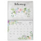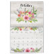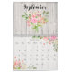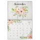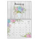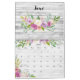 Linda coleção floral com buquês e pulverizações de flores de cor d'água desenhadas a mão pastel. Cada página do mês de calendário exibe uma mistura diferente de folhagem e flores, incluindo rosas, hífenes, hífenes, anêmonas e poinsettias, em um fundo de madeira branca rústica, com coordenação de páginas de grade personalizadas.