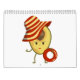 Calendário Avocado, garota de praia com chapéu de sol e anel
