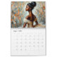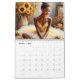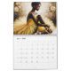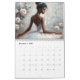 This melanin-rich calendar features a variety of artwork starring young black woman ballerinas in tutu dresses and pointe shoes. Hairstyles range from high buns to free afros, and the tutus are pink, yellow, blue, purple, green, red, black, white, and beige. The ballet dancers also vary in poses, some sitting, some standing on pointe. All are graceful and beautiful, representing hyperfeminine dark-skinned beauty and elegance. The backgrounds are mostly floral, giving them a soft, dreamy feel.