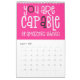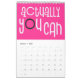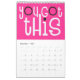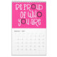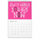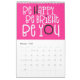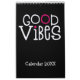 Boas vibrações calendário com uma mensagem positiva para cada mês do ano em tipografia ousada e peculiar. Os cobrir frontais e traseiros têm um fundo preto e dentro cor-de-rosa-quente, com tipografia branca com realces rosas ou pretos a quente em conformidade. Você pode alterar as cores de fundo se desejar, por meio da opção Clique para personalizar mais.