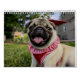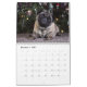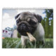 Calendário bonito dos cães dos Pugs que caracteriza sua raça favorita do cão! Grandes imagens de todo o tipo dos pugs. Excelente como um presente para um proprietário do cão. O calendário é inteiramente customizável, você pode adicionar seus próprios fotos e texto.