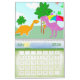Calendário bonito dos dinossauros dos desenhos animados para crianças. Calendário colorido de Dino dos desenhos animados dos miúdos por o próximo ano seguinte com os dinos bonitos dos desenhos animados: o Diplodocus alaranjado, T-Rex cor-de-rosa, Triceratops verde, Parasaurolophus azul e Pteranodon roxo de voo em muitas cenas engraçadas e coloridas gostam: dinos em uma ilha tropical do feriado, um mundo pré-histórico do vulcano com estrelas da cor, uma noite assustador do Dia das Bruxas dos dinos, amigos do dinossauro pelo Feliz Natal morno e acolhedor da lareira e muito mais grandes imagens dos dinossauros dos desenhos animados com estes animais bonitos adoráveis da Idade da Pedra. O calendário deste miúdo surpreendente dos dinossauros é inteiramente customizável, adiciona seus texto e imagens! Na parte de trás do calendário uma placa LIVRE do papercraft do dinossauro do entalhe 3D, faz seu próprio dinossauro verde do Diplodocus estar! Um presente original do Natal do calendário para os fãs grandes e pequenos dos dinossauros!