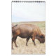 Um búfalo está orgulhosa no meio da estrada, ousando o tentar passar perto.