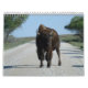 Um búfalo está orgulhosa no meio da estrada, ousando o tentar passar perto.