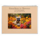 Um calendário encantador e encantador com imagens animadoras de adoráveis Bulldog Franceses complementadas por um conjunto vibrante de flores bonito. Um presente visual para amantes de cachorros e entusiastas de flores, assim como um presente maravilhoso para os donos franceses.