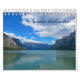 Calendário Cênico com fotos dos EUA e das Montanhas Rochosas Canadianas com 12 meses e as datas de Férias e Eventos Cristãos nos EUA.