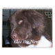 Cleo o newf aqui em um calendário! Grande presente para qualquer um que ama newfs marrons e brancos! Cleo é cão marrom/branco de Terra Nova do landseer, e é um grande assistente do negócio para Kanweienea Kreations!
