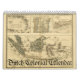 O calendário colonial holandês caracteriza mapas Indie de Suriname, Curaçau, Nederlands, New Amsterdam (New York) e outras possessões holandesas anteriores.