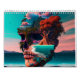 A skull head has been completely colored in an abstract style to bring you into the world of creativity and surreal design, in the style of photo-realistic landscapes, tropical landscapes, futuristic realism, pixelated realism, light crimson and sky-blue, surrealistic dreamscapes