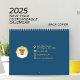 O calendário de negócios projetado com a camada de aquarela em forma de gráficos dourados arenosos e escovas em círculo no formato de arquivo SVG com cor azul como fundo. Recurso chave do arquivo SVG: capacidade de mascarar uma foto com sua forma fornecida no design. Adicione sua própria foto e descrição do produto como parte da campanha de marketing e publicidade da sua empresa. Seu design de calendário comercial atual inclui telefone, email, site, ícones de pinos de localização; adequado para todos os tipos de negócios.