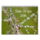 Cada mês das gotas de orvalho 2014 calendar características uma fotografia bonita, macro da gota de orvalho pelo alvorecer enevoado Seidel.