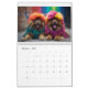 Este calendário de cachorros giro, cheio de arco-íris, é projetado para iluminar todos os dias. Cachorros grandes, cachorros pequenos, e alguns no meio. As imagens foram cuidadosamente colocadas longe dos fios e do buraco para que você possa cortá-las e salvá-las se quiser.