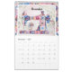 Calendário de paredes temático para máquinas de costura com 12 meses de designs de retalhos em padrões florais vibrantes e coloridos. O design de cobrir da frente é personalizado com seu nome e legado "Nossas vidas são como colchas - pedaços e pedaços, alegria e tristeza, costurados de amor", que podem ser editadas com seu próprio texto.
