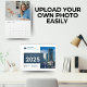 Design a na moda e calendário de 2025 personalizado com este modelo moderno e minimalista. O design apresenta uma tipografia de script divertida em um fundo azul e branco limpo, perfeito para casa e escritório. Crie facilmente o seu próprio calendário fotográfico da família adicionando imagens estimadas a cada mês. Este calendário mensal, simples, editável, é ideal para famílias com crianças e qualquer um que aprecie um toque de design moderno. O design é composto por uma tipografia moderna e lúdica. Adicione fotos da família em segundo plano para cada mês.