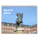 Calendário fotográfico que caracteriza o fromMadrid de 14 fotografias da cor, espanha, incluindo: Plaza de Cibeles (janeiro), Alcala e Gran através da rua (fevereiro), Mayor da plaza (março), palácio de cristal (abril), Gran através da rua (junho), dois pontos da plaza (outubro), estádio de Santiago Bernabéu (dezembro)