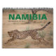 Um calendário de 12 meses que caracteriza a fotografia original impressionante dos animais selvagens e das paisagens em Namíbia.