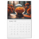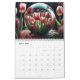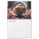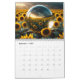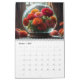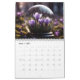 A página de cada mês contém uma bela esfera de vidro refletindo as belas flores ao seu redor.