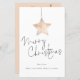 Cartão de Natal Merry com Calendário de Script de Estrela Minimalista de Aquarela. Um cartão plano de 5,5 x 8,5" para as suas saudações festivas em um estoque de cartão SEMI GLOSS 110 lb brilhante (semelhante à espessura de um cartão postal). OBSERVE: O envelope fornecido com este cartão é maior que o cartão a 6,75" x 9". Estilo contemporâneo com script moderno de conjunto de estilos manuscritos para o cabeçalho principal e personalize facilmente com sua saudação e nomes na parte inferior. Uma elegante ilustração de estrela de aquarela está no centro superior.Um calendário útil de 2022 está no verso para seus destinatários.