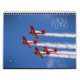 Calendário de 12 meses de fotografias de aviões modernos e clássicos que participam num espetáculo de aviões.