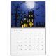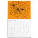 Um calendário com um assustador, assustador, ou Dia das Bruxas-tema; caracteriza tipos diferentes de animais assustadores, mas bonitos, de vistas, e de objetos associados geralmente com o assustador ou o Dia das Bruxas