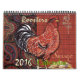 Em cada mês deste calendário é uma pintura original da aguarela dos galos por Anne Ormsby.